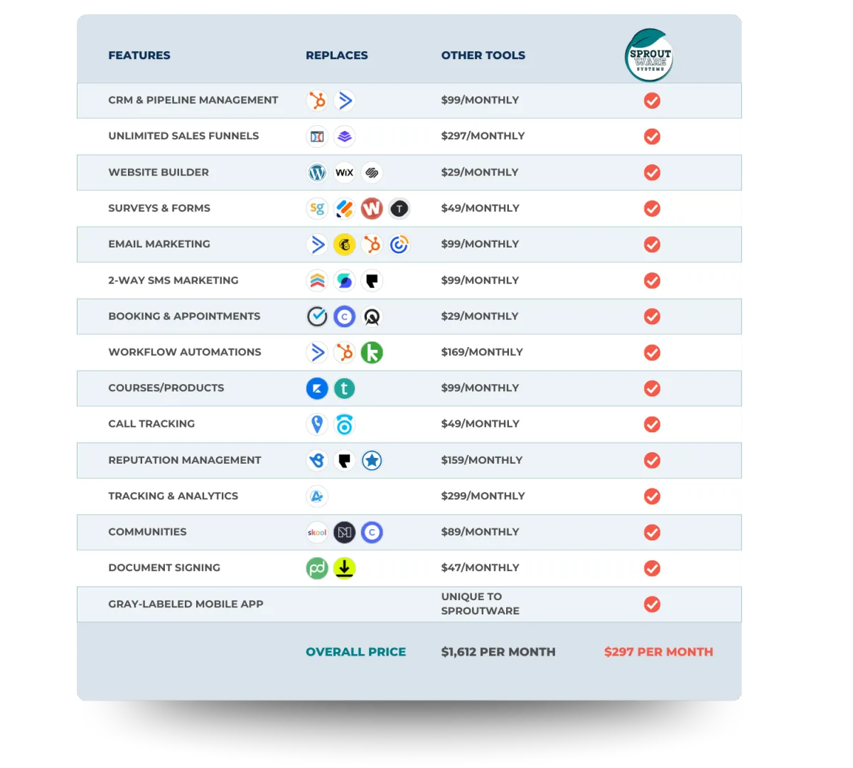 YES! Sproutware is our version of HighLevel, with out Sprout & Scale System built-in. HighLevel is the #1 Sales & Marketing software. PLUS they are constantly improving the platform. This is a system that grows with your business.